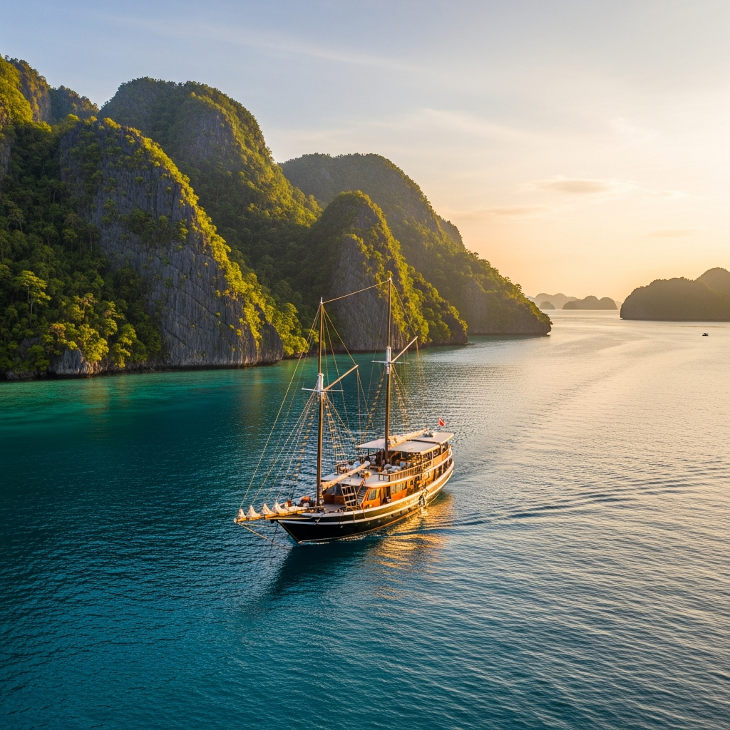 Transfer to the harbor and board your luxury Phinisi. Welcome briefing and sunset cruise.